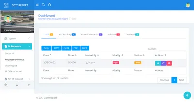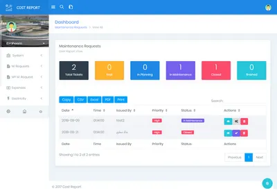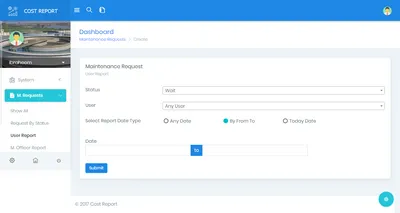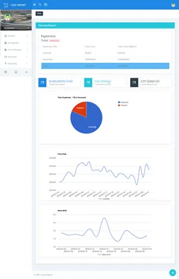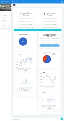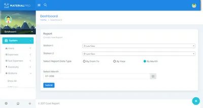 The site consists of a control panel that allows the system administrator to issue reports on expenses and stations according to the date he chooses, some reports compare stations, there is a special section for submitting maintenance requests and a section for reports on maintenance requests.
